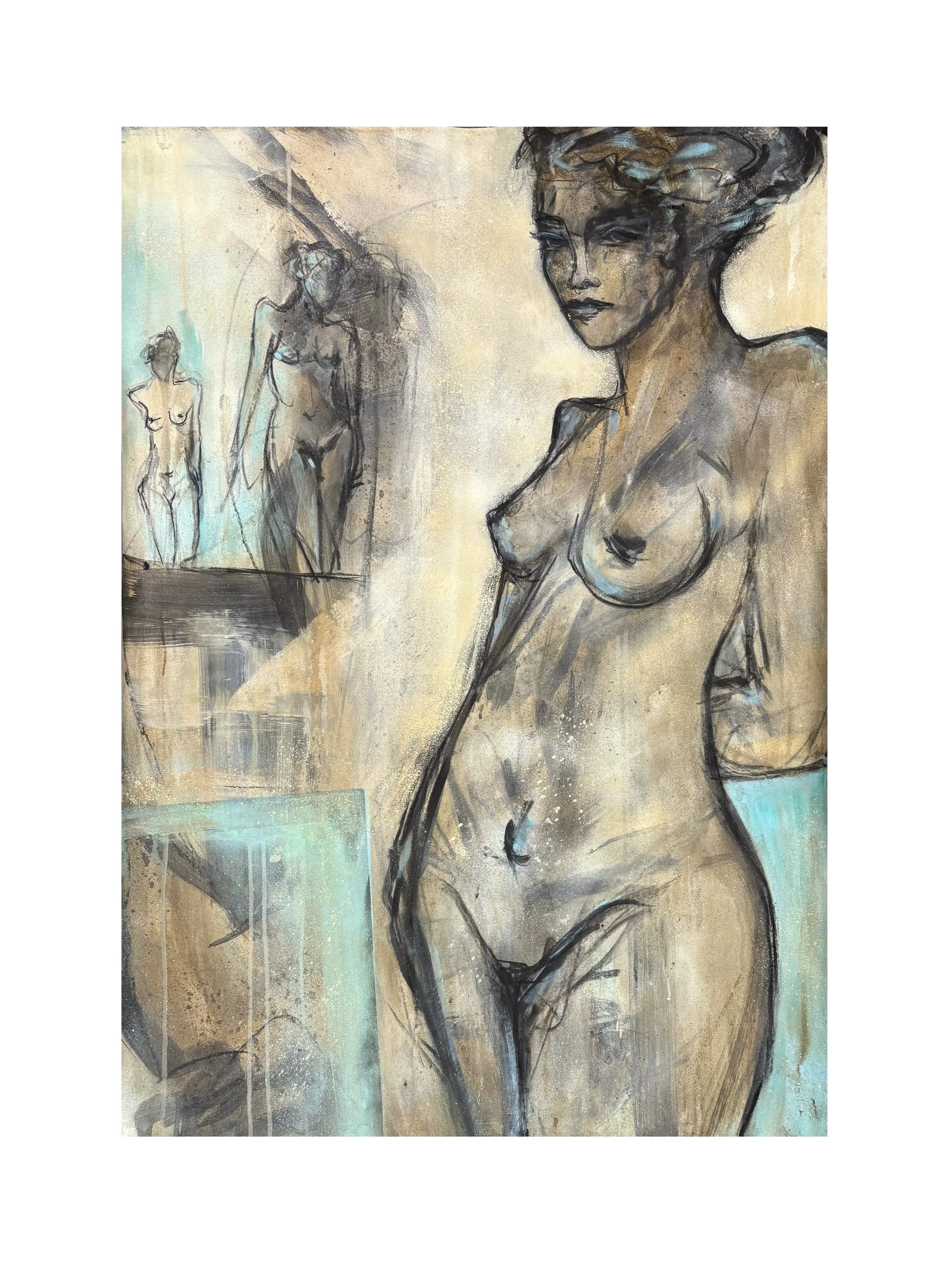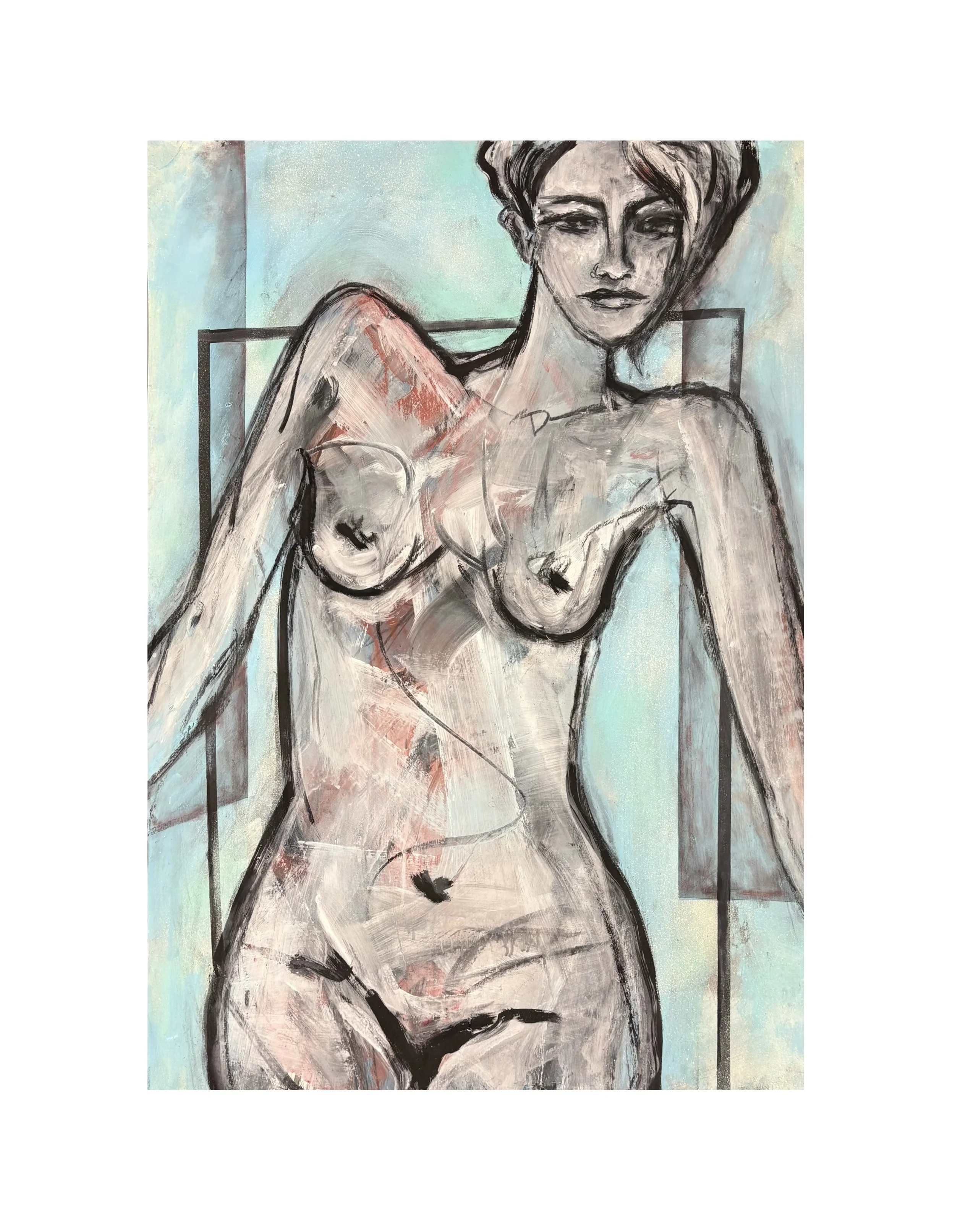 Die Arbeiten widmen sich der Darstellung von Weiblichkeit und Raum in der Malerei. Figur und Umgebung treten in ein spannungsvolles Verhältnis zwischen Präsenz, Begrenzung und Offenheit. Im Mittelpunkt stehen Frauenfiguren, serielle Bildkonzepte und eine reduzierte, zugleich expressiv